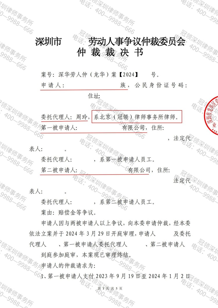 2024年,张先生因被公司辞退,遂求助到冠领(深圳)律所。同年4月,在冠领律师的协助下,张先生顺利获得二倍工资差额及律师费。