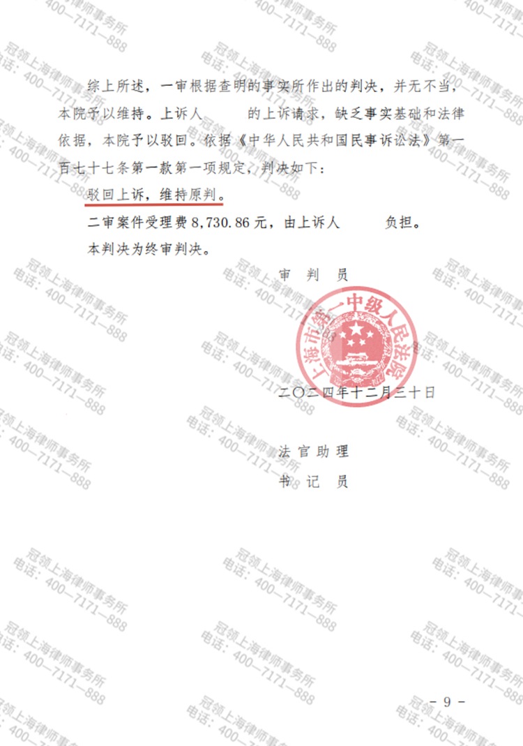 一审法院审理后认为夫妻感情确已破裂,准予离婚。房屋判归石先生,石先生需向女方支付折价款并清偿剩余贷款本息。霍女士不服提起上诉,石先生继续委托冠领律师二审维权,最终二审法院维持原判,这场离婚纠纷在冠领律师的专业助力下得以圆满解决。